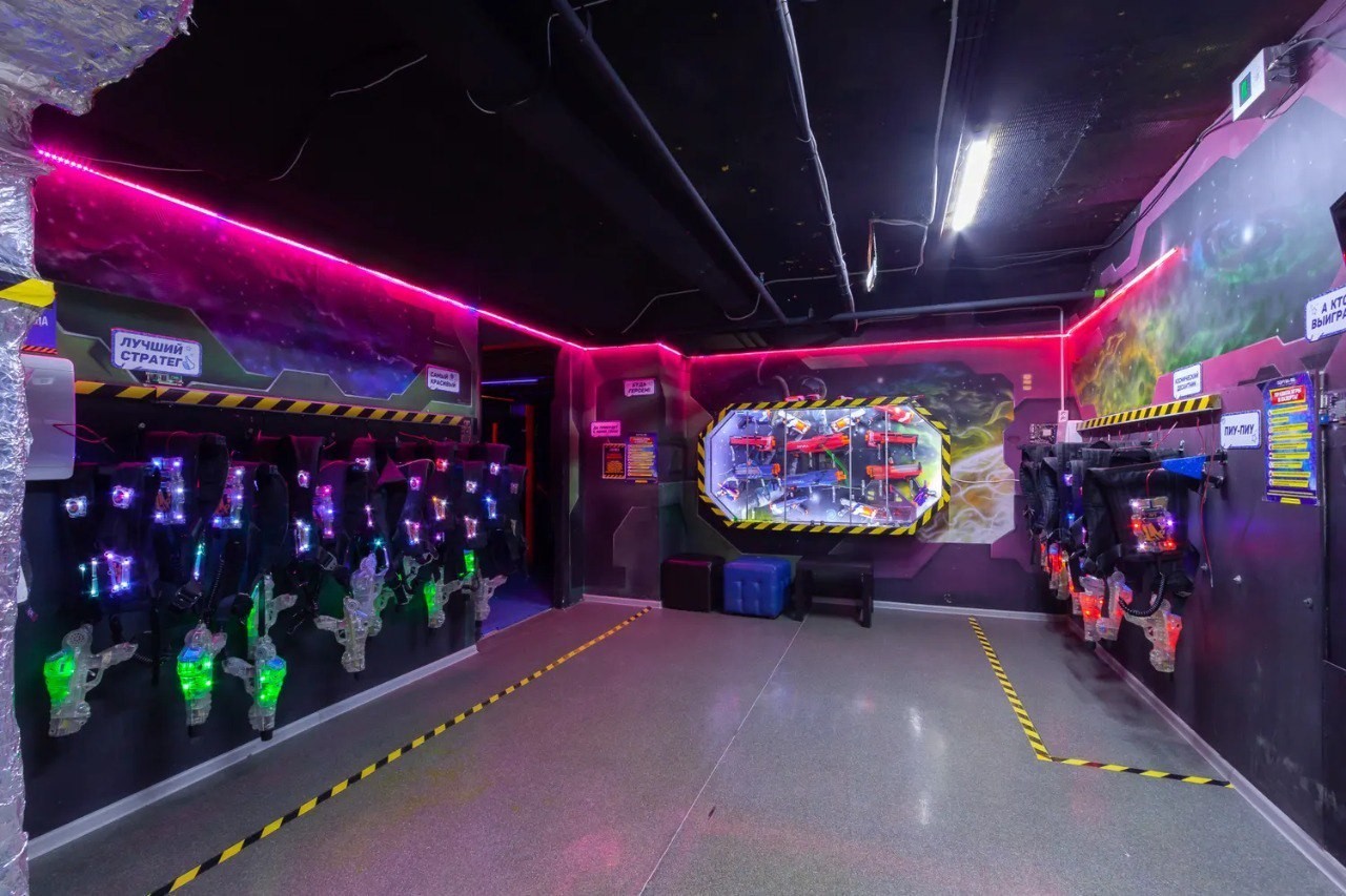 Лабиринт площадью 300 кв.м. погружает в атмосферу настоящего космического боя. Ультрафиолетовое освещение, яркие светящиеся препятствия и драйвовый саундтрек создают эффект полного присутствия — игроки забывают, что находятся в игровой зоне. Площадка рассчитана на одновременную игру до 20 человек — идеально для большой компании или нескольких команд.